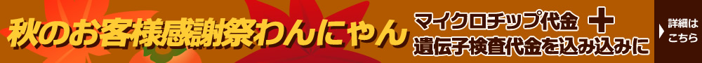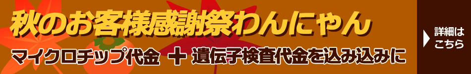 ・秋のお客様感謝祭わんにゃん・オータムフェア・50%OFFドッグフェア・50%OFFキャットフェア・今週のお飼い得わんにゃん、各店限定5頭・多頭飼いリピーター様応援フェア詳細はこちら